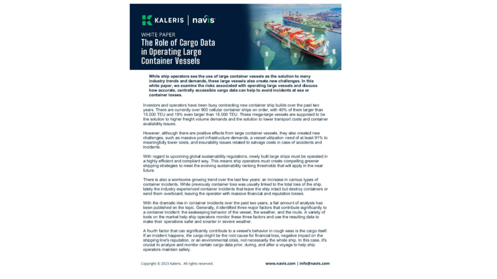 In this white paper, we examine the risks associated with operating large vessels and discuss how accurate, centrally accessible cargo data can help to avoid incidents at sea or container losses.